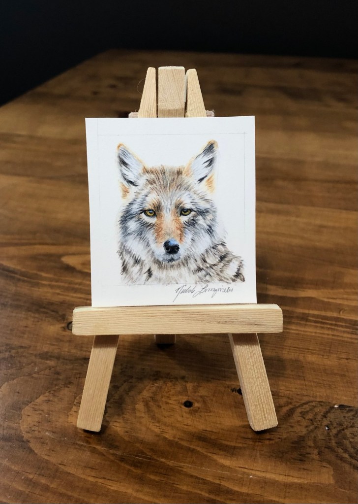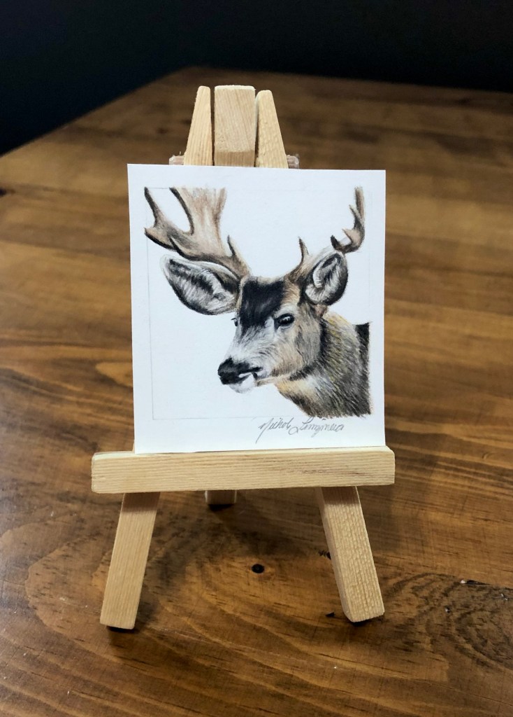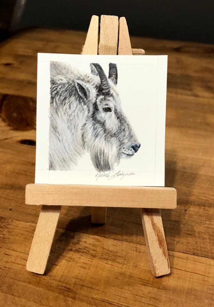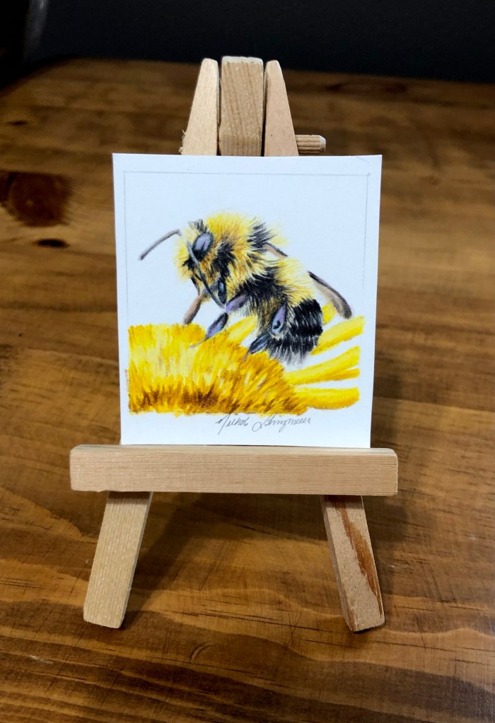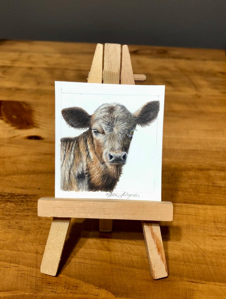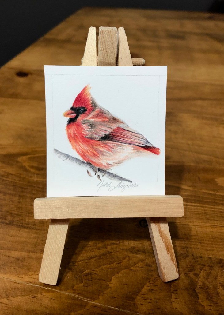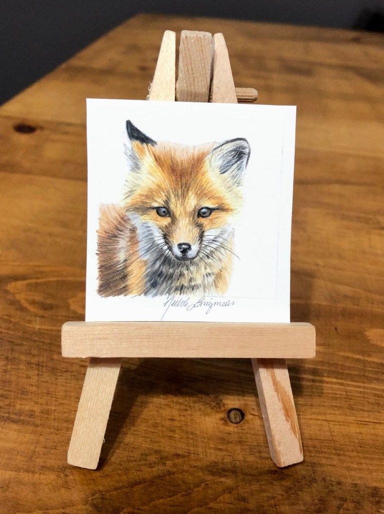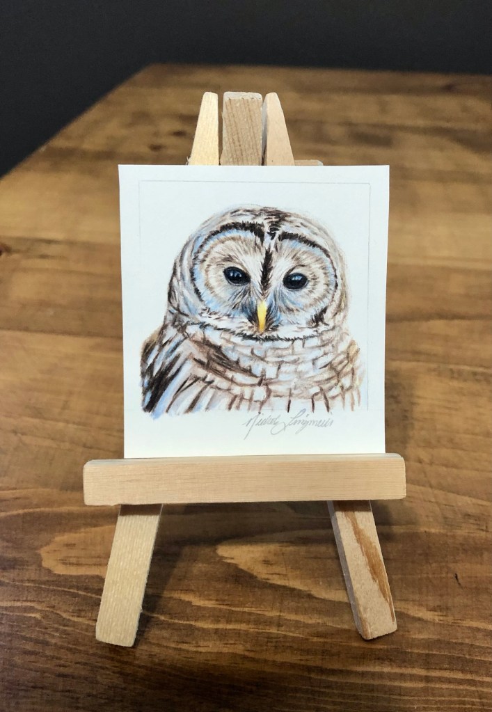 Micro Minis 2”x2”, original. colored pencil wildlife pieces, perfect for shelves, desks, anywhere! Matted in white and placed in black frame, ready for display. Share this: Click to share on X (Opens in new window) X Click to share on Facebook (Opens in new window) Facebook Like Loading...