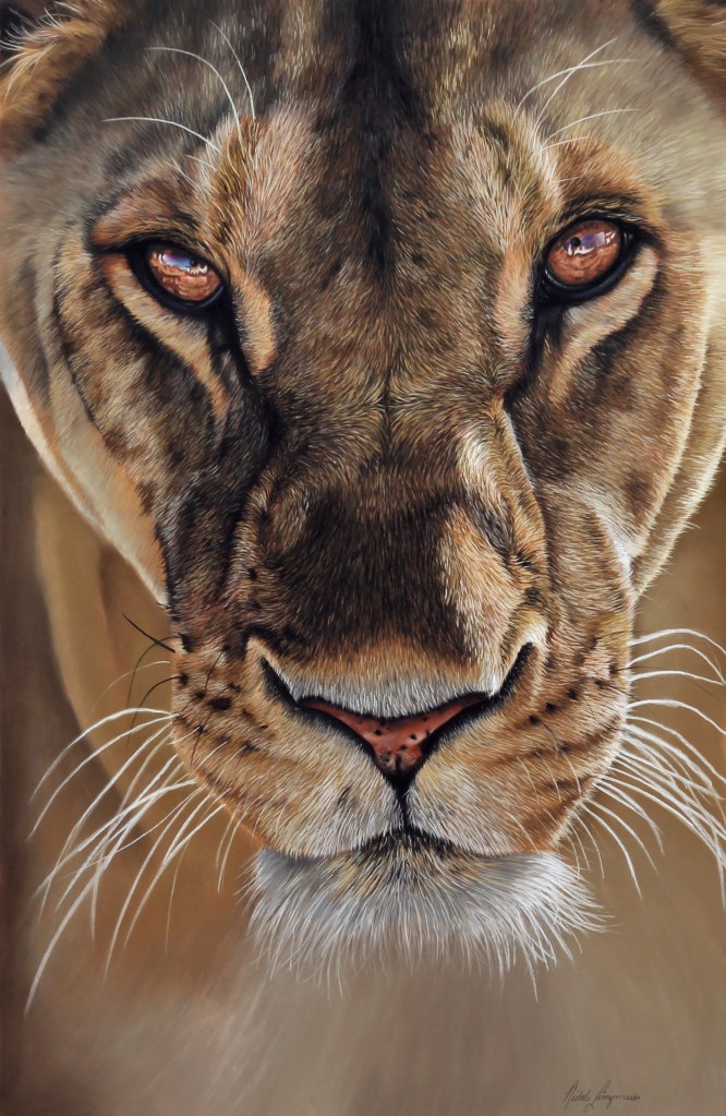 Wildlife A collection of North American and African wildlife done in colored pencils and pastels. “King of the Harem” Pastel 16″x20″ SOLD “Prince of the Harem” Pastel 16″x20″ SOLD “Samson” Colored Pencil 11″x14″ Sold “Marbled Texan” Pastel 11″x27″ Sold “Mkali” Pastel 16 1/2″x 25″ SOLD “Talk to the Butt” Pastel 8″x10″ Sold “Roscoe” Colored Pencil 21″x33″ Sold Untitled Pastel 8″x10″ SOLD “Prince of the Mountain” Pastel 11″x14″ Available “Scottish Trio” Pastel Sold “Hare Study” Colored Pencil 8″x10″ Sold “Queen Bee” Pastel 5″x7″ Sold “The Intimidator” Colored Pencil 16″x20″ Available “Queen of the Harem” Pastel 16″x20″ SOLD “Emergence” Pastel 8″x10″ Available “Spotted Innocence” Pastel 8″x10″ Sold “Young Buck” Pastel 8″x10″ SOLD “Balancing Act” Pastel 16″x20″ Available “Forest Frog” Pastel 6″x8″ SOLD “Jack” Pastel 5″x7″ Available “Giraffe Study” Pastel 8″x10″ Sold “Serenity” Colored Pencil 12″x16″ Sold “Tiger Cub” Colored Pencil 7 1/2″x11″ SOLD “The Challenger” Colored Pencil 16″x20″ Available “The King” Colored Pencil 16″x20″ Available “Tiger Eye Study” Pastel 5″x7″ Available Share this: Click to share on X (Opens in new window) X Click to share on Facebook (Opens in new window) Facebook Like Loading...